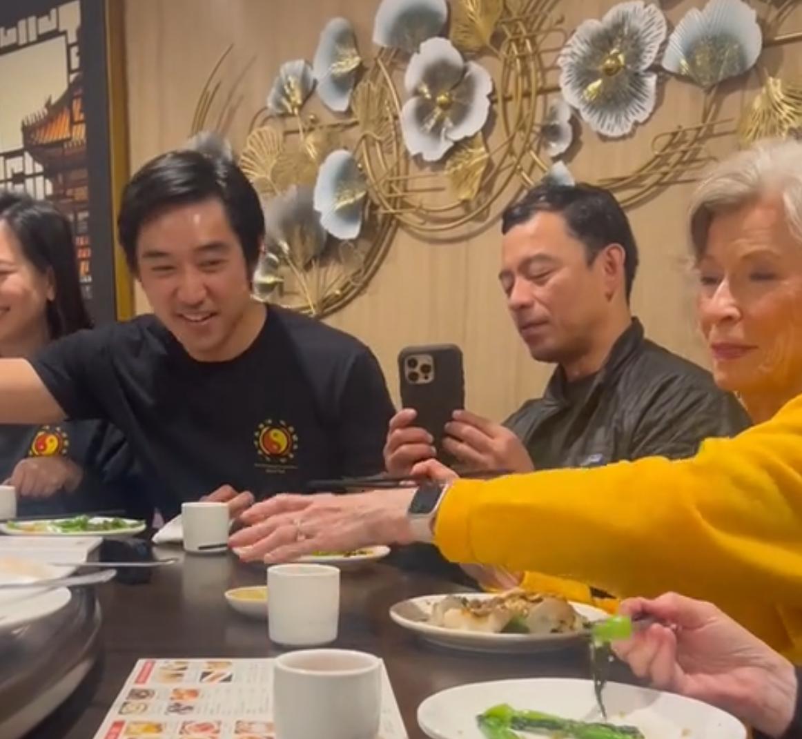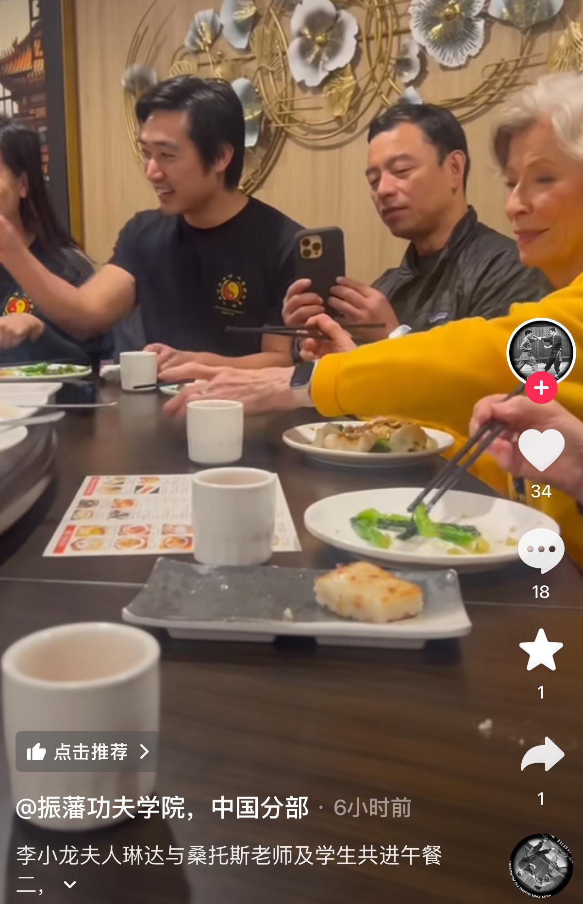 3月27日,有网友公开琳达的最新视频,她与李小龙的信徒们在美国饮茶吃饭聊天,备受尊重。