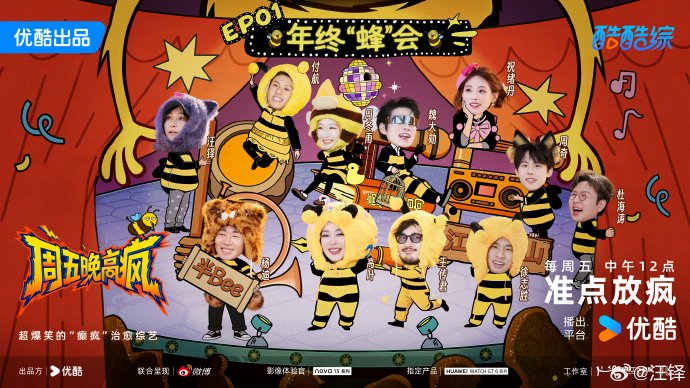 围绕“汪蜂”(即演员汪铎的趣味昵称)展开的#周五晚高疯二创大赛#,实际是优酷综艺《周五晚高疯》为激发观众创造力而发起的官方衍生内容创作活动,鼓励粉丝以节目中的艺人表现(尤其是汪铎等嘉宾的“高疯”名场面)为素材进行二次艺术加工。