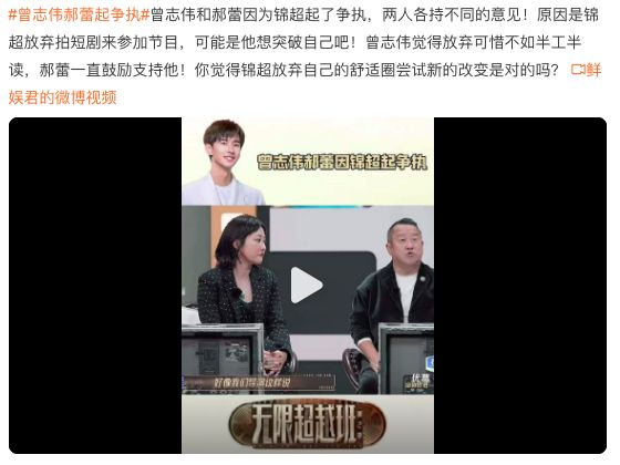 曾志伟和郝蕾吵起来了!在最近一期的《无限超越班》中,艺员锦超的决定引发了导师们的热议。