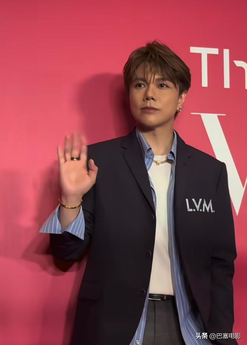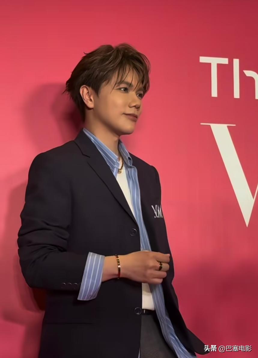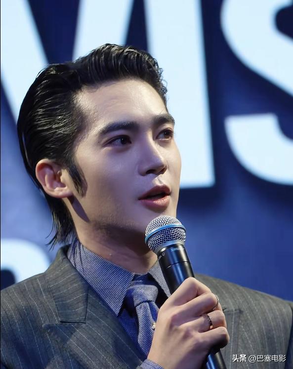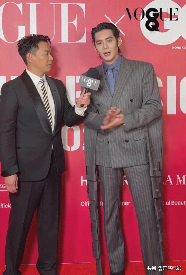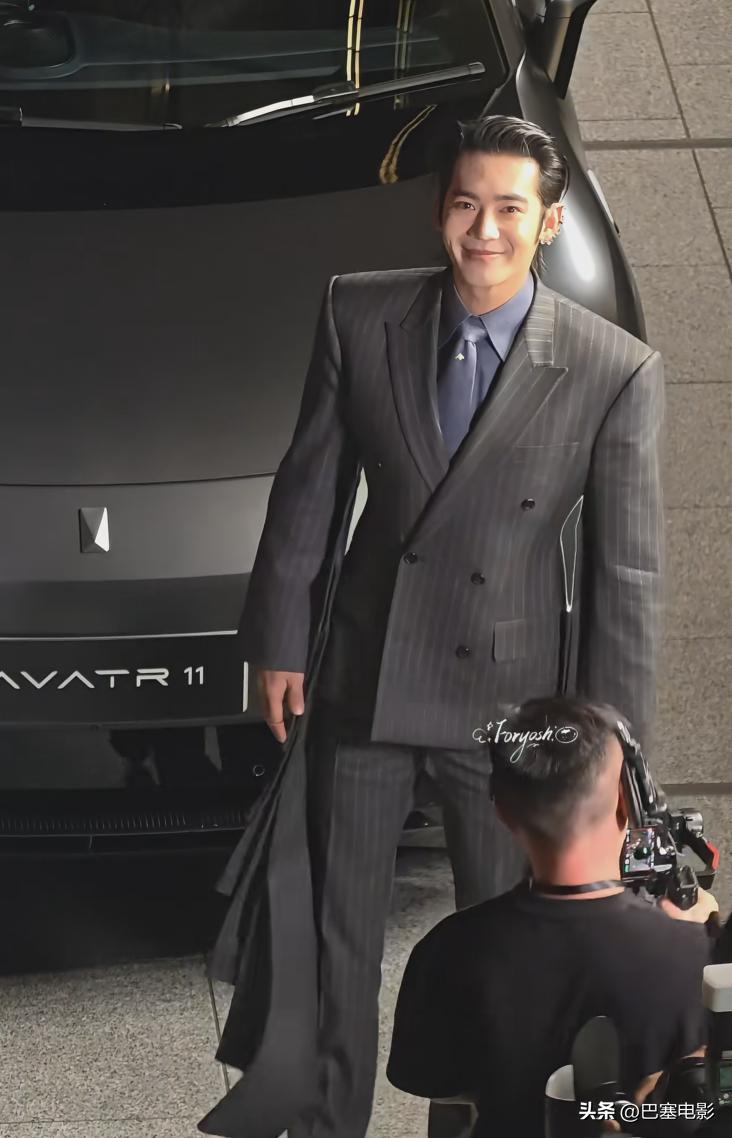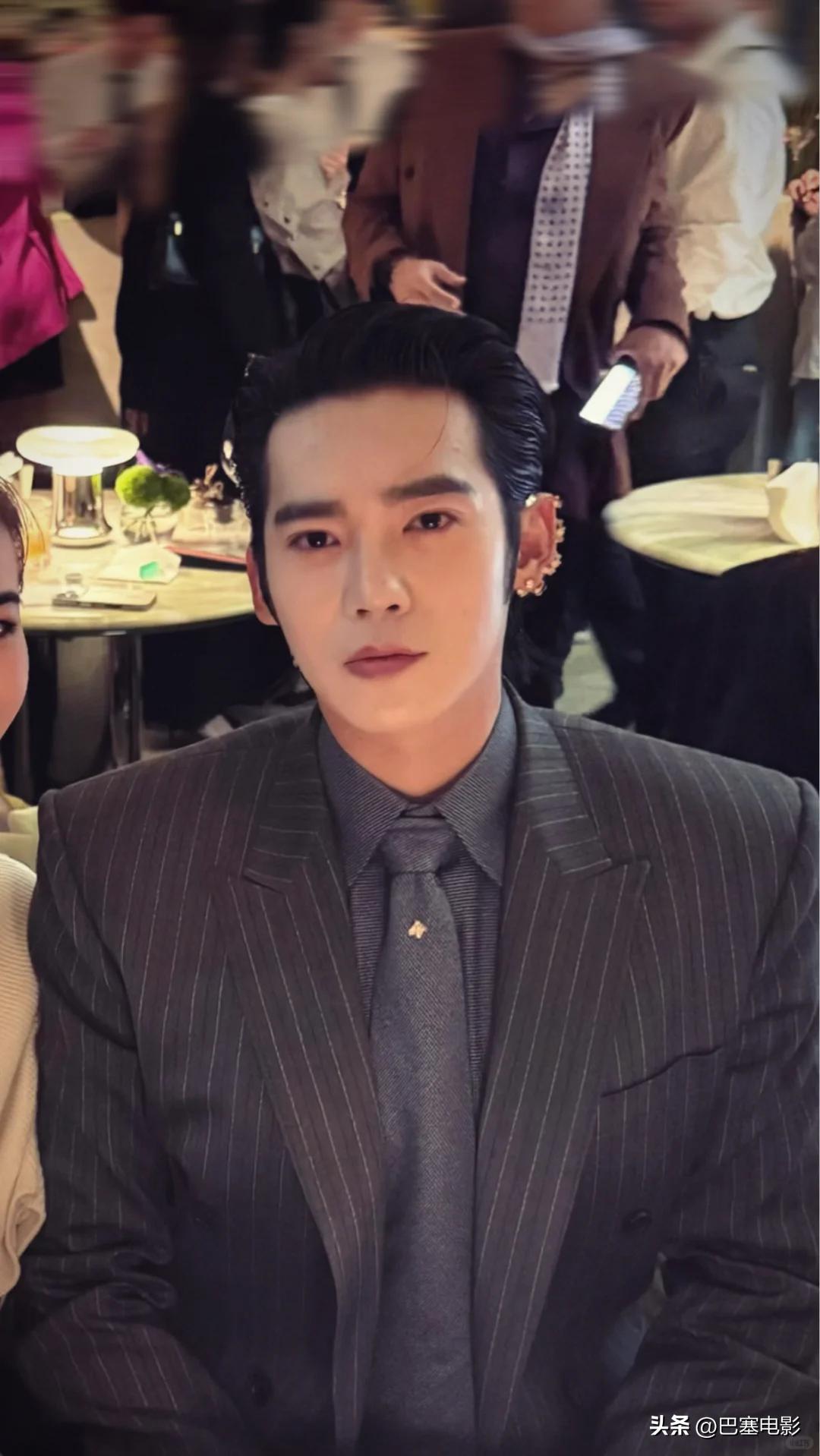 这次于适尝试了新的风格,竖纹西装配大背油头,精致满分,跟他以往给人的“粗犷”感完全不同。