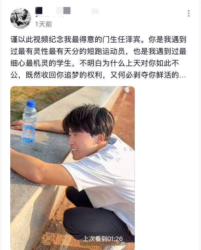 ## 任泽宾:天赋与悲剧交织,命运多舛,天妒英才,人怜才高,河南的天之骄才任泽宾,年仅19岁便陨去了光阴的年华,留下的是一个令人心痛的遗憾,这个来自普通农村的少年,用他的才华与努力,写下了一个感人至深的故事。,任泽宾的百米成绩11.35秒,犹如一颗璀璨的明珠,闪耀在平凡的校园里,这一成绩不仅超越了普通高中生,更接近国家级运动员的水准,令人不禁遐想:如果命运不同,他是否能走向奥运的高峰?命运的安排总是让人哭笑不得。,去年父亲因意外失业,家庭陷入困境,任泽宾选择放弃短跑训练,转而务工维持家用,这个决定背后,是对命运的无奈妥协,也是对理想的告别,正如他的哥哥在视频中所说:“在我们家,养家糊口比一切都重要。”在现实的重压下,一个优秀的运动员不得不放弃理想,这一现实令人扼腕。,任泽宾的短跑生涯,是一个充满矛盾的故事,他在田径场上创造的奇迹,却无法在生活中获得应有的荣耀,他的天赋与努力,成为了他悲剧的推手,正如老师在悼念视频中所说:“如果不是因为家庭的困难,他一定能走到更高的平台。”,在这个充满不确定性的世界里,命运的安排往往让人感到无奈,任泽宾的故事,不仅仅是一个运动员的悲剧,更是无数年轻人在现实面前妥协的缩影,他们中的许多人,可能也像任泽宾一样,拥有天赋,却因为现实的压力而放弃理想。,任泽宾的故事也给我们带来了深刻的启示,无论前路如何,年轻人要记住:天赋是上天的礼物,但生活的选择才是自己的,即使面对困境,也要保持对理想的追求,因为生命的价值不在于你达到了多少,而在于你是否为自己的选择而战。,任泽宾的逝去,让我们看到了生命的脆弱,也让我们更加珍惜那些在平凡中闪耀的灵魂,他的故事,会激励更多人在逆境中坚持追求自己的梦想,虽然天妒英才,但英才的光芒永远不会熄灭。