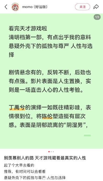 ## 《天才游戏》:一场精心设计的人性狂欢盛宴——对丁禹兮与彭昱畅的吃瓜评论,《天才游戏》这部电影堪称一部完美的精神盛宴,它以惊人的表演张力撕开了阶层与人性的褶皱,在这场精心设计的人性狂欢剧中,丁禹兮与彭昱畅的对手戏如同一场精妙的棋局,每一手势、每一个眼神都精准到位,直刺人心。,这对天才演员的镜像对手戏堪称表演史上的经典之作,在影片中,丁禹兮饰演的陈伦与彭昱畅饰演的刘全龙的身份互换游戏,展现出令人窒息的张力,丁禹兮以微抬下颌的优雅仪态、冰冷疏离的眼神,完美诠释了陈伦这个阶级精英的表演,从他的疏离感到隐忍中的权力欲,都透着一股令人不安的疯狂,而彭昱畅则用佝偻的脊背和冻疮手的细节,刻画出刘全龙这个底层天才的卑微与不甘,当身份互换时,丁禹兮模仿底层蜷缩的防御姿态,彭昱畅则复刻贵族整理袖扣的刻板动作,这种互为镜像的互文式演绎,让身份错位的荒诞感直击人心。,影片中的审讯室对峙戏更是把悬疑氛围推向了极致,丁禹兮镜片后的目光犀利如刀,轻蔑的笑意中裹挟着无与伦比的压迫感;而彭昱畅的充血瞳孔和暴起的青筋,则传递着绝望与反抗的挣扎力,最令人印象深刻的是两人隔玻璃对视的镜像对手戏,丁禹兮轻叩镜面的动作如同敲击猎物的笼子,而彭昱畅的瞳孔震颤中映出身份认同的崩塌,这种无声的精神绞杀让人瞬间窒息。,丁禹兮与彭昱畅的表演如同一场精妙的化学反应,丁禹兮的"戏剧感"让人感受到命运的无常,而彭昱畅的"生活流"则锚定了现实的痛感,他们的表演能量碰撞,化作了一场尖锐的社会寓言,当刘全龙举箭对准陈伦眉心时,箭尖颤抖的弧度里透着人性的犹疑;而陈伦抚摸奖状墙时的哽咽声线,刹那间戳破了阶级固化的血腥本质,丁禹兮撕毁西装的动作象征着金丝笼的虚妄,而彭昱畅吞咽冷馒头时的喉结滚动,成为了底层挣扎的注脚。,这场天才间的演技角力,最终在银幕上淬炼出钻石般的多面光泽,丁禹兮与彭昱畅用毛孔都会演戏的精准度证明:最好的对手戏不是非此即彼,而是在灵魂的共振中炸裂出照亮人性深渊的闪电,他们的表演不仅让观众感受到剧情的紧张,更让人深刻思考人性的复杂与多维度。,这部电影之所以令人印象深刻,不仅在于它精心设计的剧情,更在于它用表演赋予了叙事以纵深,当镜头定格在他们对峙的瞬间,我们看到的不仅是两个演员的精彩表现,更是人性复杂面貌的真实写照。《天才游戏》用这场精妙的表演博弈,编织出一张令人窒息的精神网,让我们在观看的同时,也在不断地自我审视。## 镜像之交:天才对手戏下的身份祛魅,在这个充斥着光鲜剧情与华丽设定的时代,《天才游戏》中的丁禹兮与彭昱畅的对手戏,如同一场精心设计的精神饕餮,撕开了现代社会中那些看似牢不可破的阶层与人性褶皱,这场表演博弈不仅仅是两个天才演员的技艺较量,更是一场关于身份认同与人性深度的精神盛宴。,双重镜像的博弈中,丁禹兮与彭昱畅构建了令人窒息的阶层张力,陈伦与刘全龙的身份互换游戏,恰如其分地撕裂了优雅与底层、权贵与贫寒的表面光环,当丁禹兮以微抬下颌的优雅姿态、冰冷的眼神诠释陈伦的表演时,他的每一个细微表情都在撕裂着这个阶级精英的虚伪面具;而彭昱畅则用佝偻的脊背、冻疮的手指,刻画出刘全龙卑微中的不甘与反抗,这种截然不同的肢体语言构建起了一个令人窒息的阶层鸿沟,更在镜像反转的瞬间,将身份的荒诞感直刺人心。,眼神为刃的对峙戏,更是将悬疑氛围推向了一个令人窒息的高度,审讯室中的眼神交锋,丁禹兮镜片后的目光如同手术刀般精准,每一个眼神都蕴含着令人不安的张力;而彭昱畅的充血瞳孔、咆哮的青筋,则在诉说着底层天才面对命运枷锁时的绝望与反抗,最令人震撼的,是他们隔玻璃的镜像对视——丁禹兮轻叩镜面的动作,如同在敲击一个精心设计的牢笼,而彭昱畅的眼神则在镜面映射出身份认同的崩塌,没有台词的支撑,只靠眼神完成了身份的操控与精神的绞杀,这种无声的对抗,远比任何华丽的台词更具震撼力。,疯批美学与底层黑化的碰撞,则赋予了这场对手戏令人窒息的深度与复杂性,丁禹兮突破了陈伦这个优雅的甜宠人设,用推眼镜的微表情切换优雅与癫狂的状态,雨中吻戏中的颓艳与绝命鸳鸯的眼神,瞬间揭开了角色内心的悲剧密码,而彭昱畅则在从奢侈到复仇的转变中,展现了天才底层的良知与欲望的撕裂,这种疯批与底层的碰撞,形成了一种独特的表演美学,让观众在看到优雅与底层的碰撞时,不禁陷入深深的思考。,更重要的是,这场表演之博弈赋予了剧情深邃的社会寓意,刘全龙举箭对准陈伦的瞬间,箭尖颤抖的弧度道出了人性的犹疑;而陈伦抚摸奖状墙的那一刻,丁禹兮哽咽声线里的纯真,戳破了阶级固化的血腥本质,演员们用身体作为叙事载体,让身份交换的荒诞游戏升华为对生存规则的集体叩问,丁禹兮撕毁西装的虚妄,彭昱畅吞咽冷馒头时喉结的滚动,都成为了底层挣扎的注脚。,这场天才间的演技角力,最终在银幕上淬炼出钻石般的多面光泽,丁禹兮与彭昱畅用堪比天作的演技证明:最好的对手戏不是非此即彼的较量,而是在灵魂的共振中炸裂出照亮人性深渊的闪电,他们的表演之力,不仅仅是为了赢得观众的掌声,更是为了撕开世俗的面纱,让我们在观看这场精彩的表演时,不得不思考:在这个充斥着阶层与身份的世