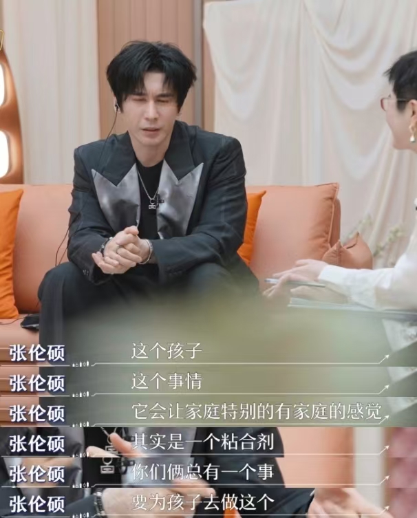 张伦硕说,孩子会让家庭特别有家庭的感觉,是粘合剂,两人总有一个事是为孩子做的。