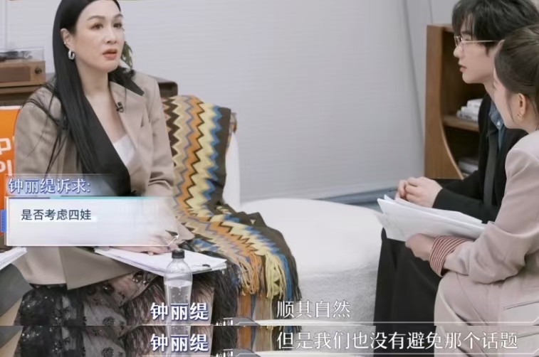 张泉灵一针见血的指出,张伦硕主观意愿上是想要的,并提出关键性问题,那就是钟丽缇已经55岁,如果想要也就是这一两年的事情。