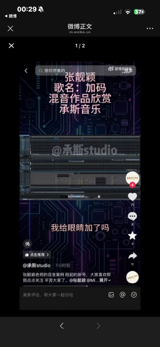 2026年4月11日,歌手张靓颖在社交媒体公开发文,直指其尚未发行的新歌《加码》混音版本遭幕后工作人员非法泄露。被曝光的音源为未完成制作的待发行版本,由名为“承斯音乐工作室”的后期制作团队成员擅自上传至短视频平台,并标注“混音作品欣赏”标签吸引流量。该视频迅速在公共平台传播,部分网友误以为是官方版本,甚至追问正式发布时间。