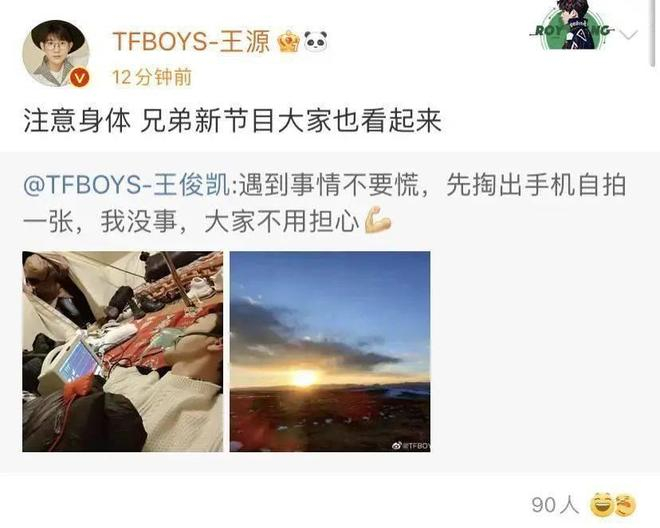 昨日,王俊凯的新综艺《恰好是少年》开播,第一期节目中王俊凯就因为高原反应身体抱恙,今早凌晨王俊凯也在社交平台发布自己的照片,表示自己身体无碍,兄弟王源千玺也纷纷上线喊话小凯注意身体,三人互动太暖心!
