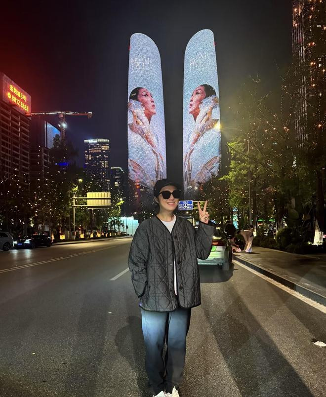 杨千嬅打卡成都双子塔