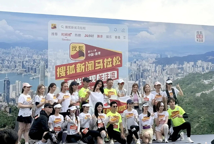 香港湾仔海滨现场很热闹。第十八季搜狐新闻马拉松在26日于香港开始。搜狐公司和紫荆杂志社主办这个赛事。很多人来看。上午,林志玲、黄晓明、蔡卓妍和黄宗泽等艺人到起点。他们穿运动服,向观众挥手。现场气氛热烈。这些跨界跑者用行动展现活力。他们带动大家上赛道。