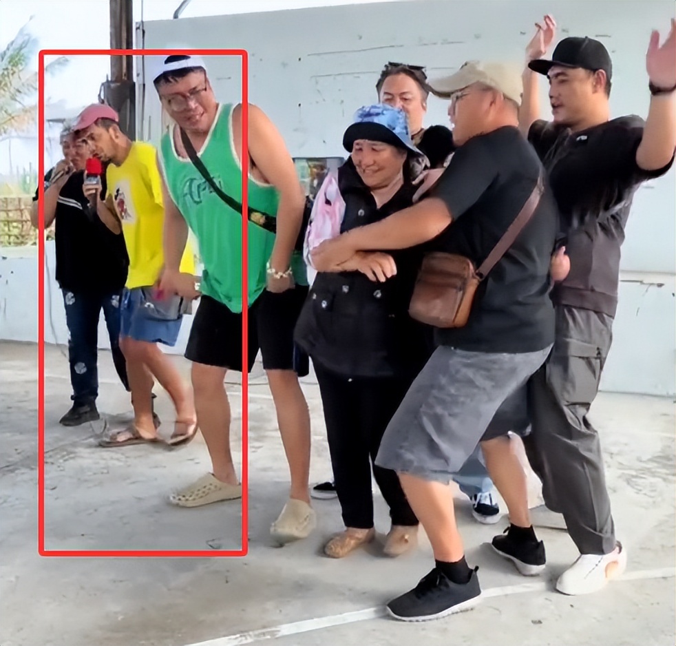 最吸睛的还是他脚上的拖鞋,就是那种最常见的塑胶款,颜色暗沉,鞋头还有点磨损,妥妥的爸爸辈穿的款式,估计在村里随便找个大叔都能看到同款。