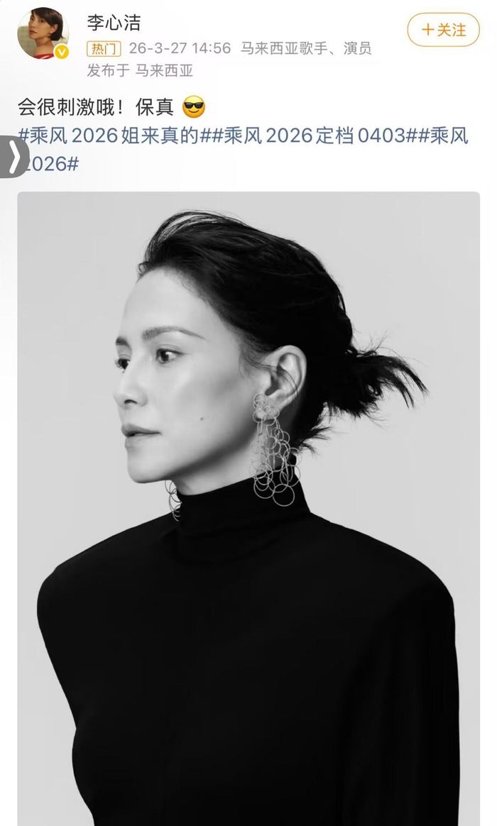 3月27日,《乘风2026》公开嘉宾阵容,宣布节目将于4月2日开启直播。