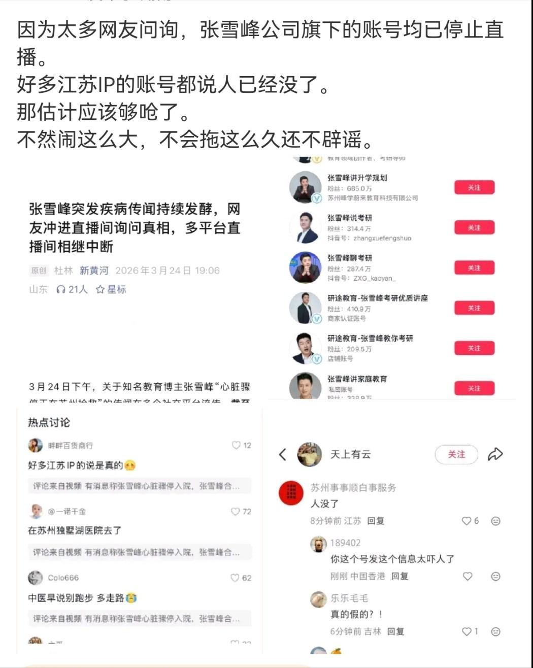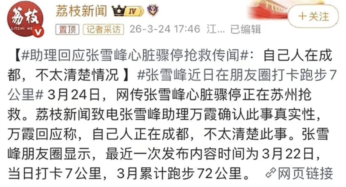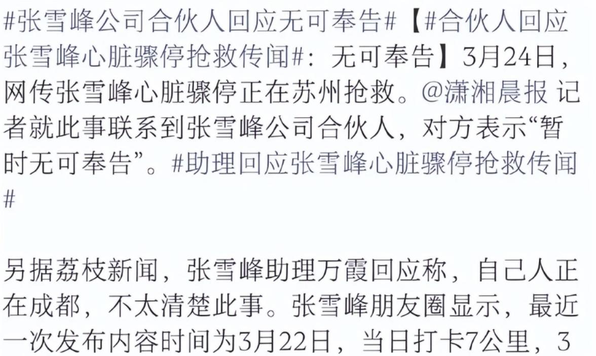 这边亲近的人没消息,那边“知情人”的细节却已经漫天飞了,比如有人说他本就有心脏病,此前还曾被强制入院;