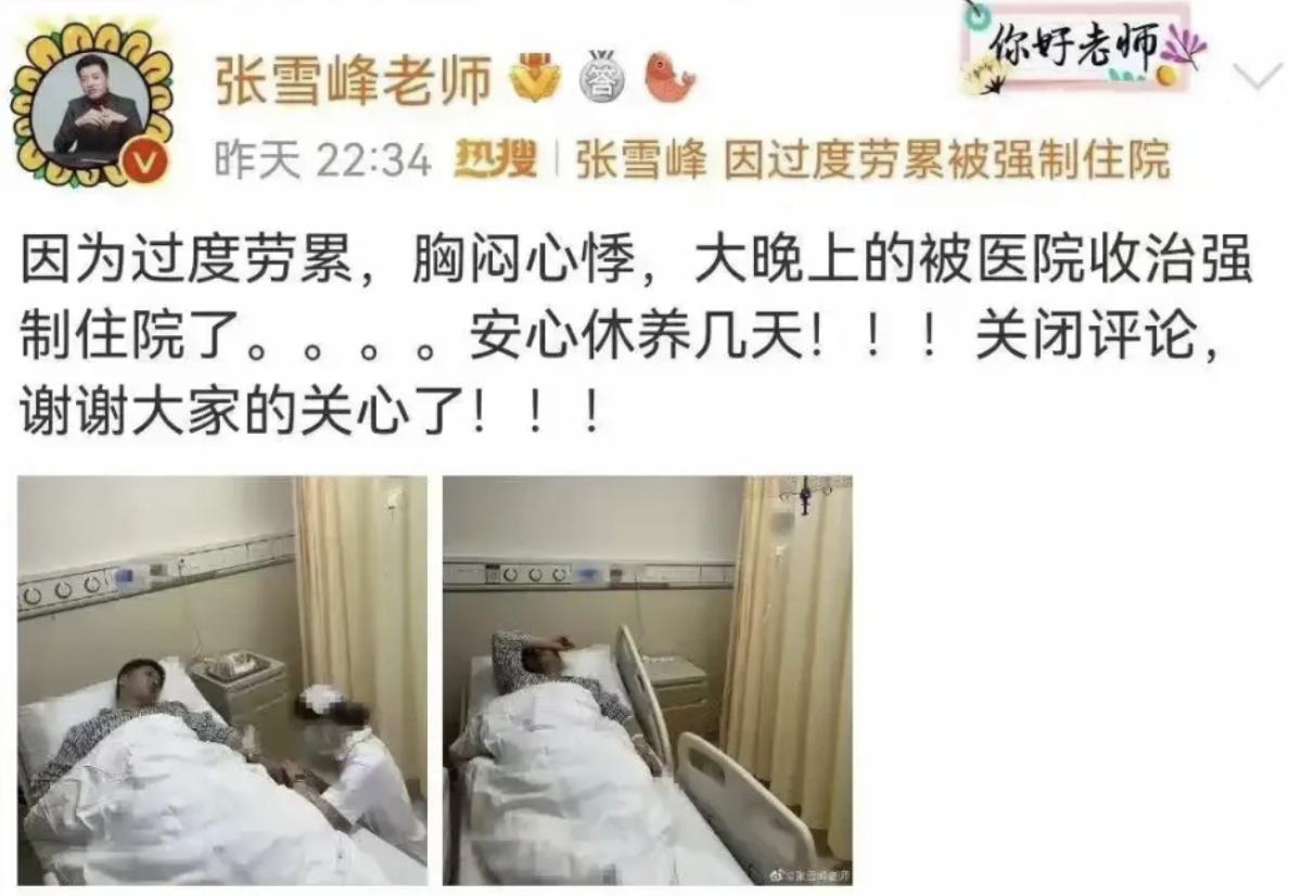 一方面他健康亮起了红灯,因为长期高强度直播和连轴转工作,张雪峰早在2023年就因为胸闷心悸被强制住院。