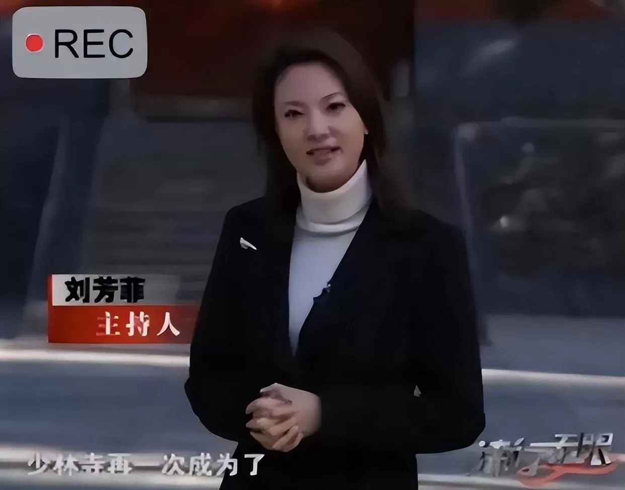 同样的厄运,也降临在央视名嘴刘芳菲身上。2012年,正值“非遗”文化备受瞩目的年份。刘芳菲随队拍摄专题片,在少林寺大殿前留下了一张集体大合影。