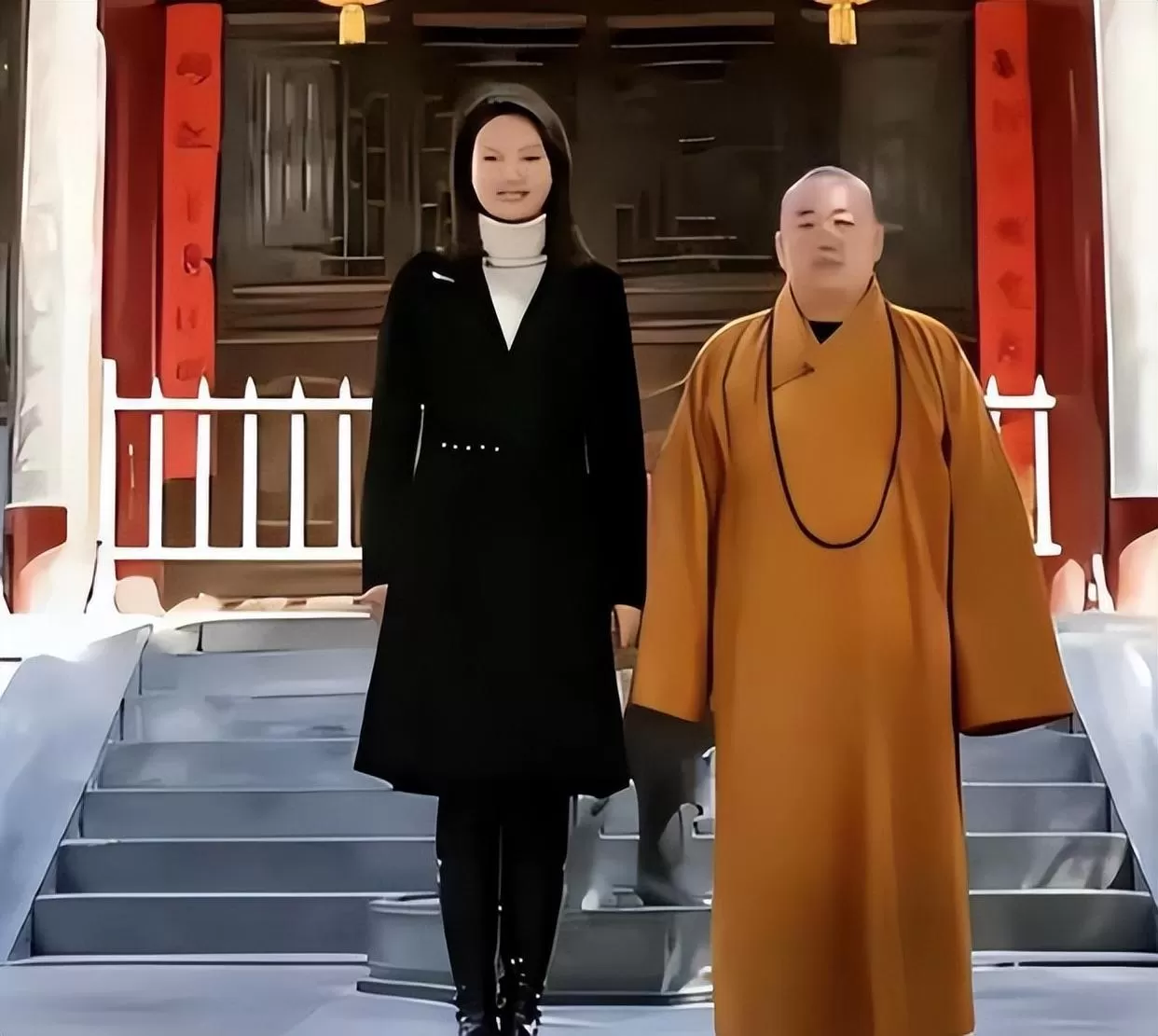最为令人背脊发凉的,莫过于一张利用AI技术伪造的“吻手礼”照片。画面中,方丈似乎正亲吻女主持的手背,这一虚构的假象瞬间引爆了舆论的火药桶。