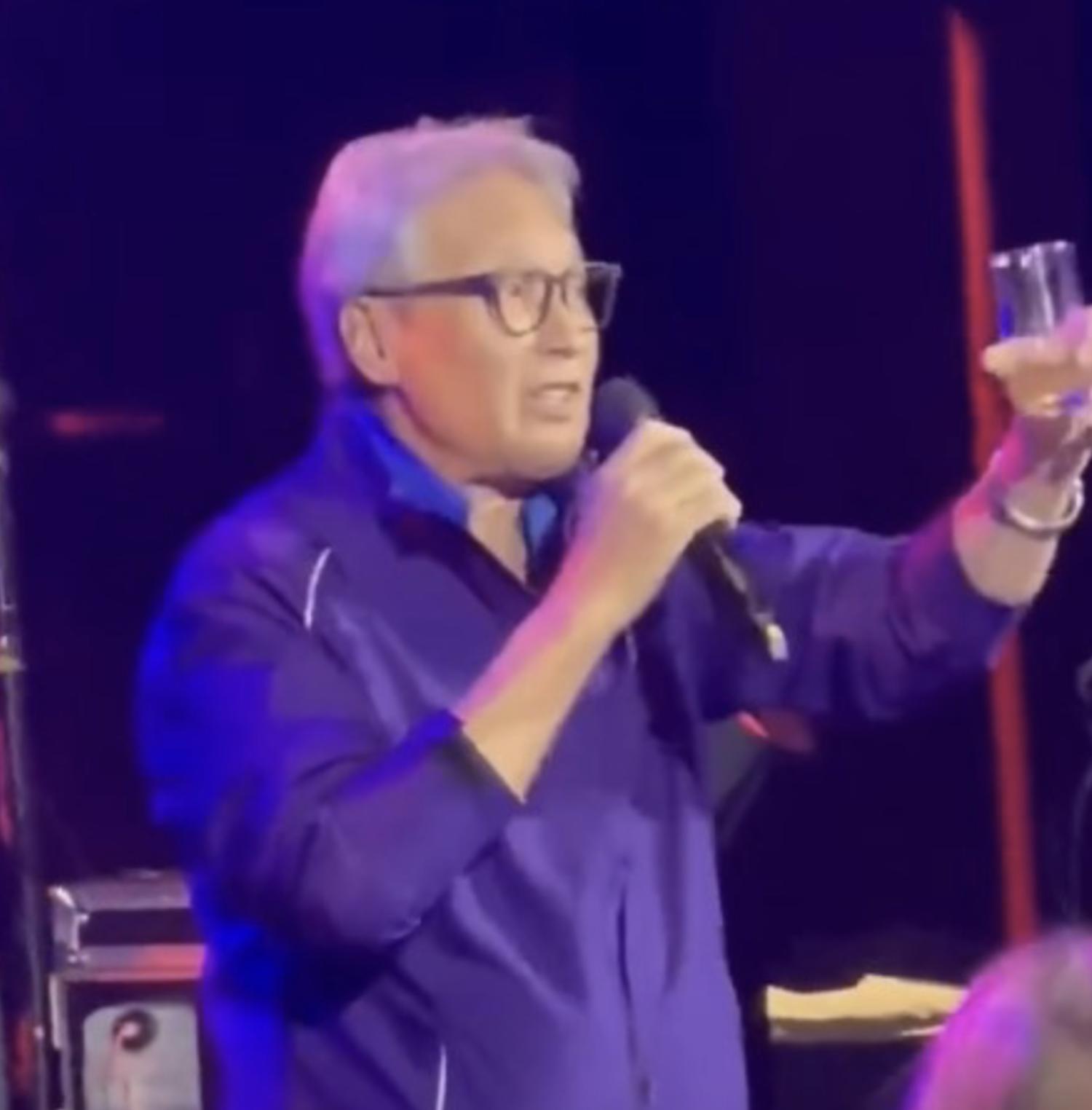 昔日的男神,一转眼已经是八旬老人,岁月早就在他身上留下了很多的痕迹。从被曝光的影片可见,出席晚宴的秦祥林白发苍苍,不过发量依然浓密,当晚他身穿简约运动外套,戴上了一副老花眼镜,显得和蔼也慈祥,像极了邻家的长者。时隔多时不见,秦祥林仍然精神奕奕,身板硬朗,虽然身材明显发福,不过因为他的身材本就很高大,所以又不觉得臃肿。在晚宴中,他受邀发言,一手拿着话筒,一手拿着酒杯,神采飞扬,一番言谈之后还大方敬酒,魅力不减当年。