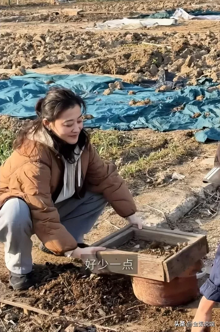 平时梅婷并不常往菜地里跑,她的日常工作和生活重心还是在演艺事业上,但这一回她实打实地跟着公公学,蹲下来,拿起工具,认认真真地帮着种小白菜。
