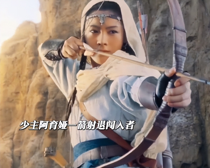 她饰演的阿育娅出场手持大漠弯弓,大喝一声:“擅动刀兵者,死”,随后百步穿杨,仿佛能一箭破万军的气势真是把吴京都给比下去了。