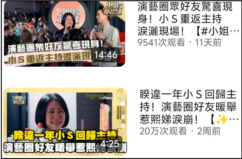 然而就节目仅仅几十万的播放量看,事不过三,外界再怎么心疼小S失去姐姐,看她哭一两次也够了。