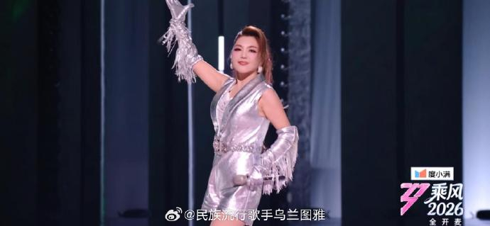 乌兰图雅的演艺生涯始于"车能开到的地方"——从偏远县城街口到乡村婚宴舞台,从边防军营到山区学校。这类基层环境常伴设备简陋、突发频发的挑战:话筒逐字中断时,她即兴清唱完成表演,甚至衍生"唱单不唱双"的行业调侃;暴雨中音响失灵,她以人声互动控场,将事故转为温情环节。这种"无设备依赖"的硬功夫,使她面对《乘风2026》直播无修音、突发抽签首位登场时,仍能气息稳如CD,被观众形容为"像在自家客厅唱歌"。