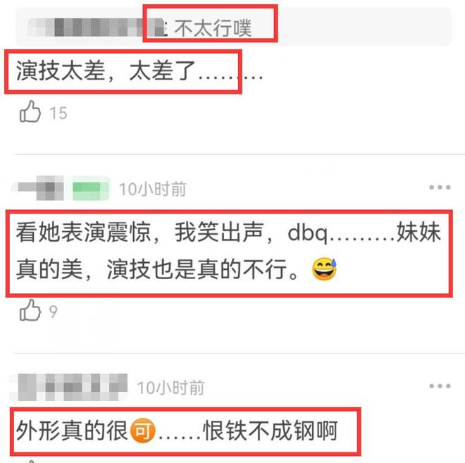 出道这么多年,她的演技也没什么长进,还是有点木,动作、表情也很刻意,表演痕迹太重,演什么永远都是一副表情。