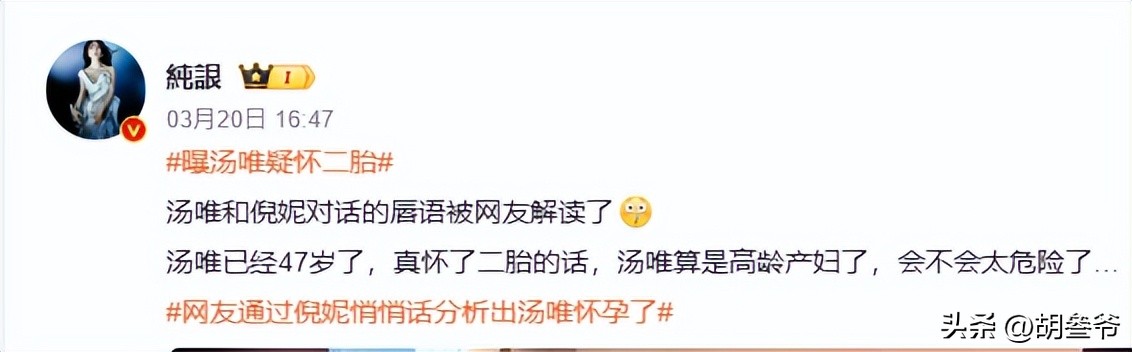 可万万没想到,第二天#汤唯疑怀二胎#的词条却直接冲上热搜,网友们的讨论根本停不下来。