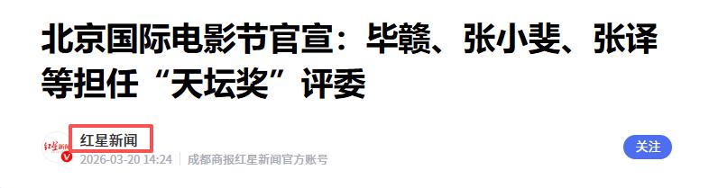 红星新闻|北京国际电影节官宣:毕赣、张小斐、张译等担任“天坛奖”评委