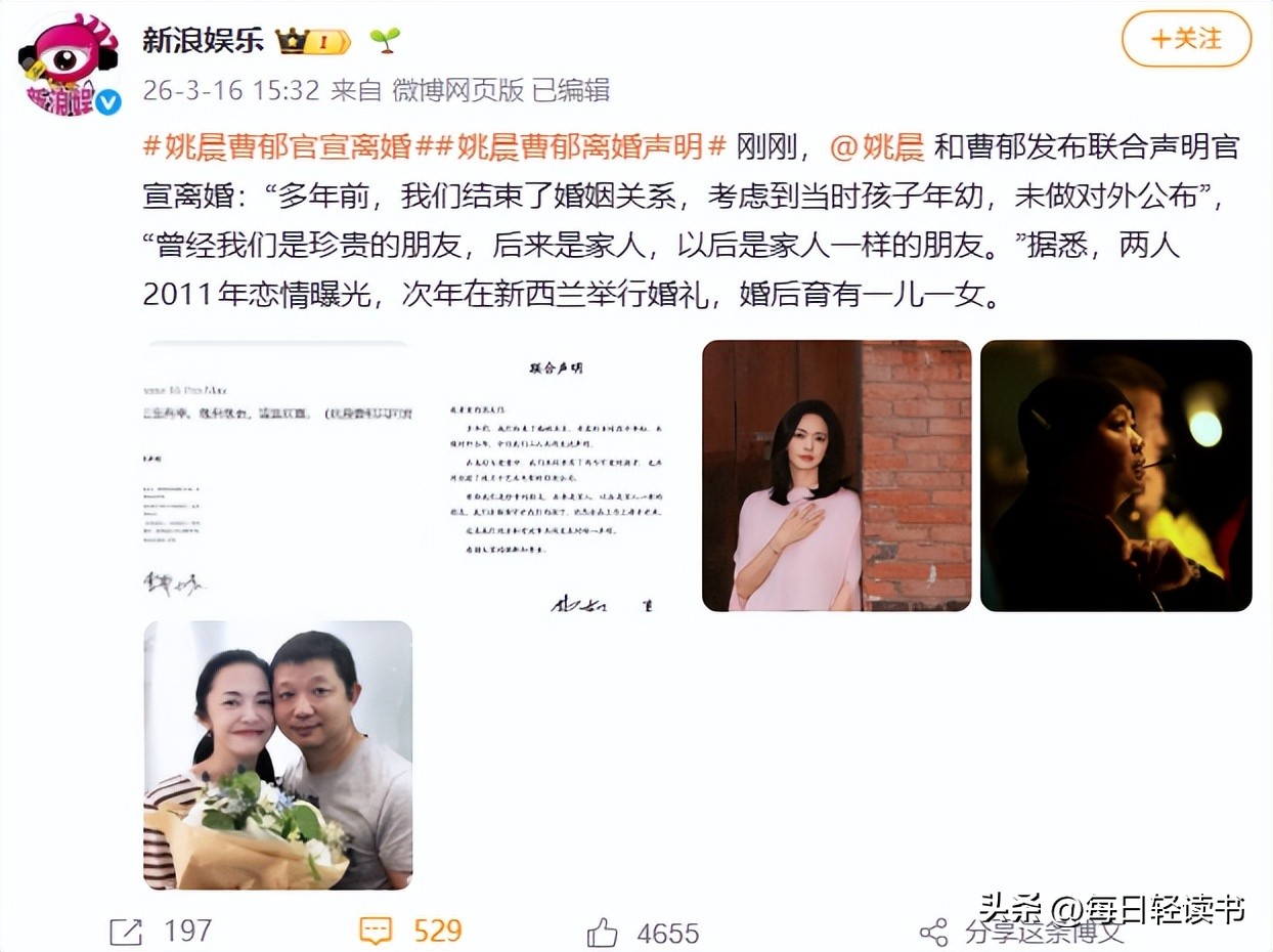 新浪娱乐(姚晨曹郁官宣离婚 2026.3.16)