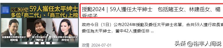 由于在慈善方面做出的突出贡献,前年,何超蕸被政府授予“太平绅士”的称号,由此可见其优秀程度。