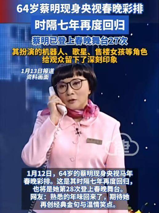 到了2026年马年春晚,彩排的工作已经进入了紧张的阶段。此时,一则消息在网络上引发了巨大的关注:64岁的蔡明时隔7年后,再度出现在春晚的彩排现场。这不仅是她第28次登上春晚舞台,更意味着她将在这个备受瞩目的舞台上再度亮相。消息一出,瞬间引发了广泛的讨论。许多网友激动地表示:今年春晚终于有味道了!不过,也有一些人带着疑虑,心中难免有些担忧:时隔七年,蔡明还能找回曾经的状态吗?