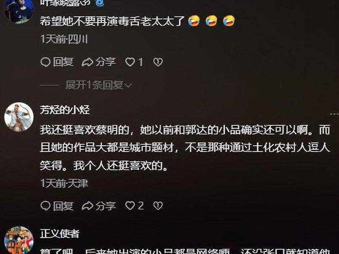 然而,就在《儿子来了》获得满堂彩之后,蔡明却选择了突然隐退。她的隐退并非毫无征兆,而是背后积累了一些争议。郭达因种种原因退出春晚后,蔡明与潘长江组成了新的搭档,推出了一系列充满毒舌老太太形象的小品。初时,这种犀利的台词和夸张的表演风格给观众带来了新鲜感,甚至千年的狐狸,玩什么聊斋这样的台词也成为了网络热梗。但随着时间的推移,这种风格的重复让观众开始产生审美疲劳,批评的声音也开始增多。