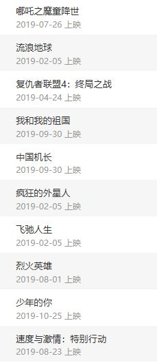 这十年中间,到了2019年,五年过去,上映的电影变成了如下片子。