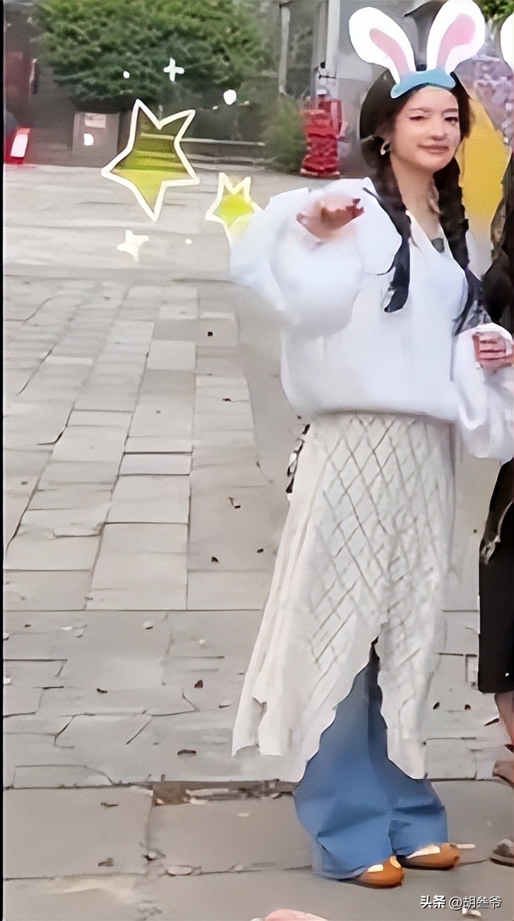 不过在镜头直拍下,她的脸部轮廓显得比较圆润,脸颊肉感明显,即便用麻花辫修饰,也没能完全遮掩,这大饼脸算是硬伤了。