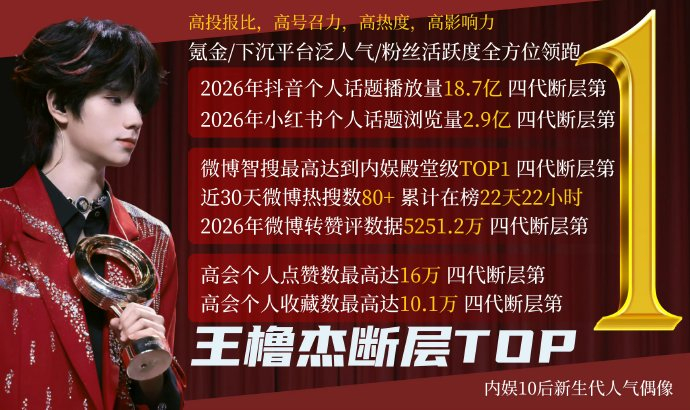 截至2026年4月高会功能关闭前,王橹杰以近40万会员数创下内娱养成系纪录,断层领先第二名逾10万粉丝。这一数据源于现象级爆发:2025年末与三代成员穆祉丞的合作舞台《来自天堂的魔鬼》使其24小时内暴涨6万粉丝,实现从七番到一番的逆袭;2026年生日单小时增粉破万,周边销售额屡创纪录——限量台历37分钟售罄、棉花娃娃销量超3.5万件,单月商业价值突破千万元级。当数据成为内娱衡量人气的硬通货,这场碾压式胜利已远超普通竞争维度。