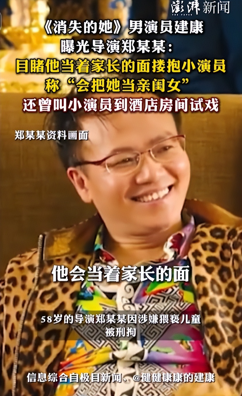 据他透露,郑某某经常对小演员有亲密肢体接触,还以试戏为由单独接触孩子。