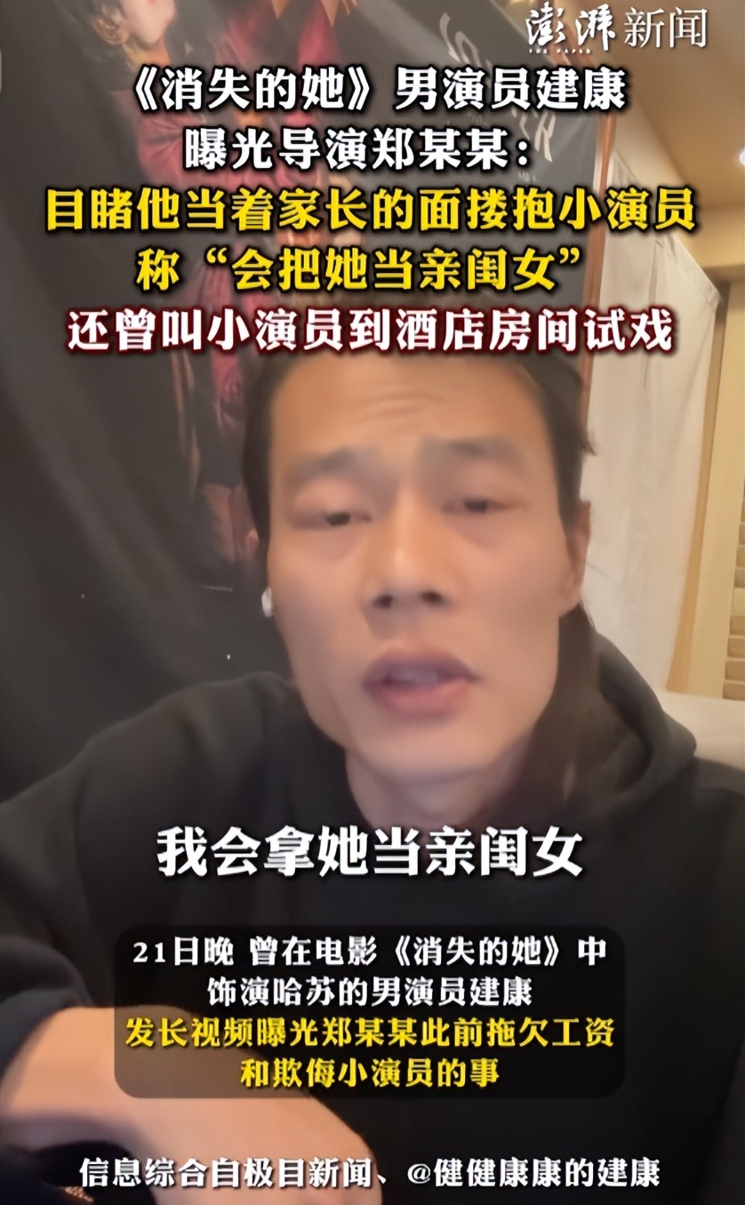 演员建康曾曝光业内人士郑某某,不仅拖欠酬劳,还对小演员做出不当举动。