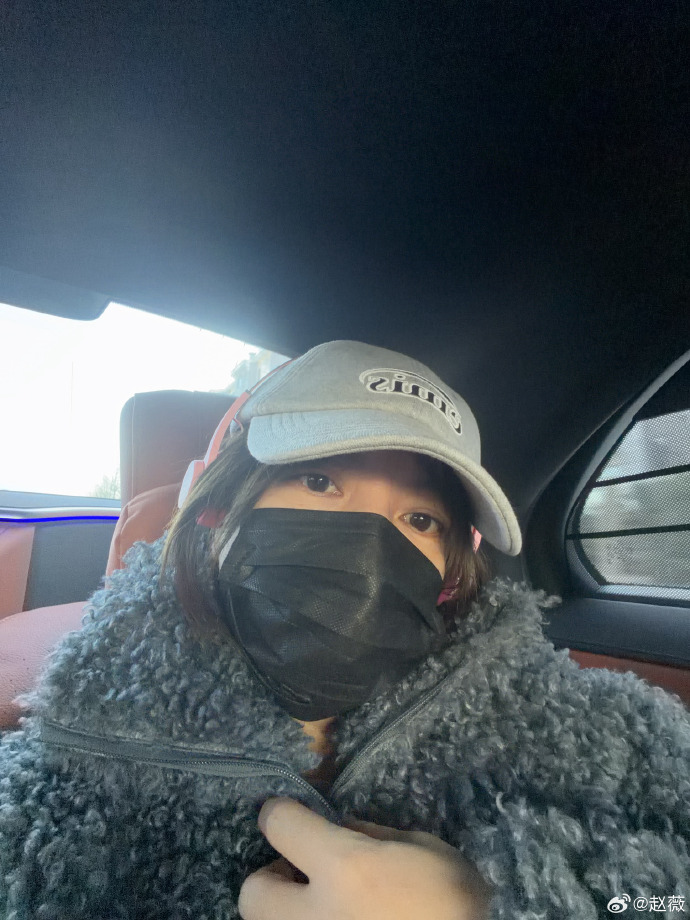赵薇随意披着头发,打扮十分低调,脸上还戴着口罩。