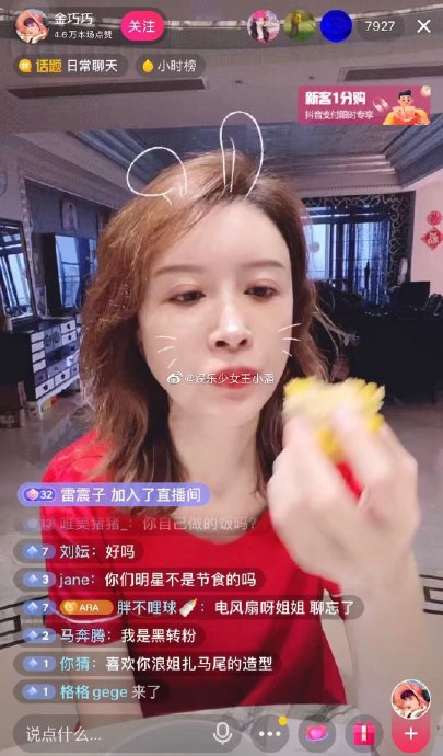 直播的释放:带货时她却彻底卸下包袱:居家直播穿百元衣服素颜出镜,调侃产品"是便宜货"(千足金吊坠砍价至199元),甚至因女儿催促美容而中断直播。这种不设剧本的互动,让观众看到"豪门阔太也会打包剩菜、用橡皮筋扎头发"的烟火气。