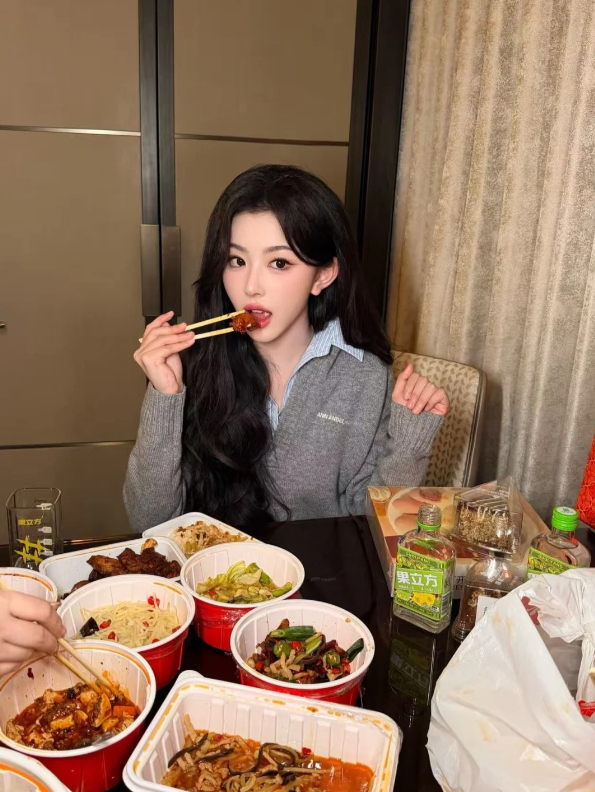 支撑这种高强度的,是她对身体近乎严苛的管控。孔雪儿是易胖体质,这也让她在饮食上保持近乎“苦行僧”式的自律:高蛋白、高纤维、睡前绝不进食,是铁打不动的规矩。但在她的社交媒体上,偶尔也能瞥见另一面。高强度的工作间隙里,她会和工作伙伴点上外卖,一起喝果立方,清香沁爽的柠檬味滑过喉咙,似乎能带给她片刻的释放。收工后的一顿火锅,一顿外卖,一瓶小酒,路边摊上偶遇的新鲜水果,都是她更鲜活的一面。