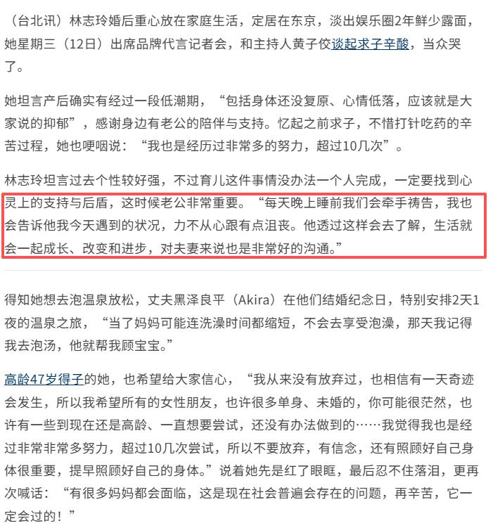 婚后林志玲为了生宝宝,经历了多次的医疗干预。