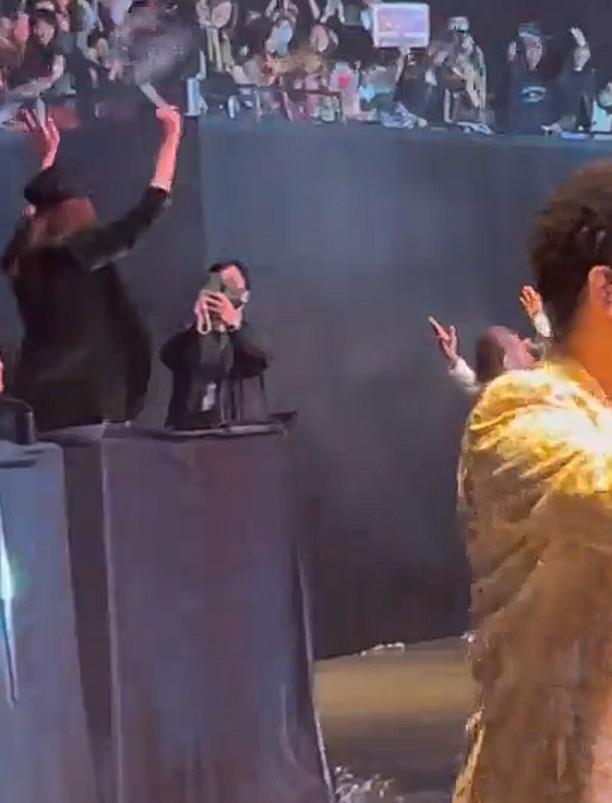 演唱会进行到互动环节,黑泽良平路过VIP区的时候。