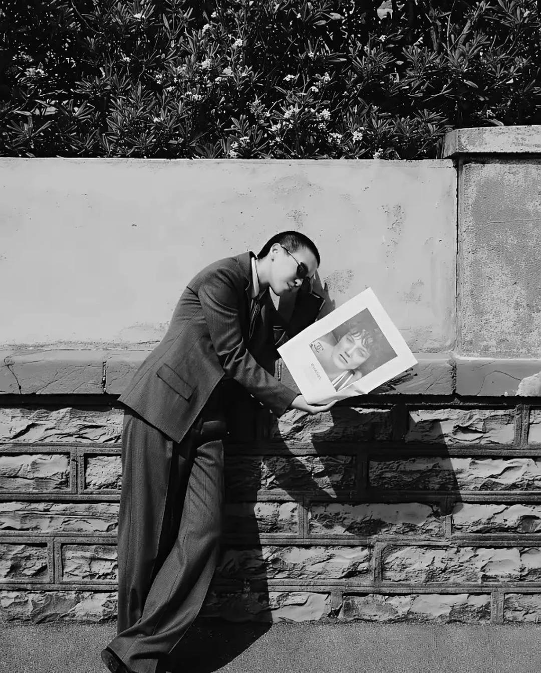 有时候她倚着墙面翻两页杂志,抬眼的瞬间慵懒又漫不经心;有时候沿着斑马线走几步,抬手的姿态随性又洒脱,西装的规整质感和她身上自带的不羁感撞在一起,没有半分刻意凹造型的僵硬,只剩下不受束缚的少年气。