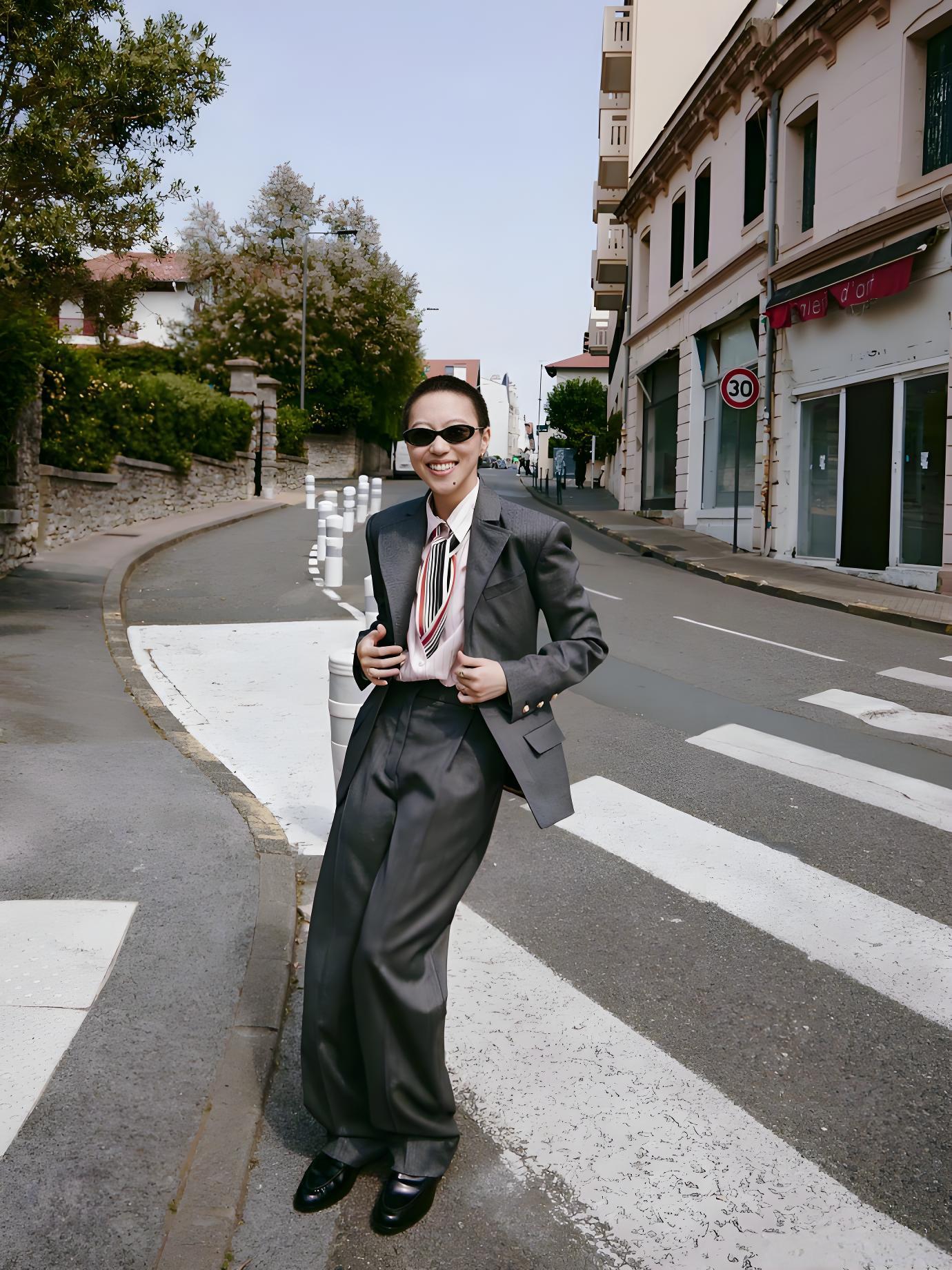 窦靖童在香奈儿2026/27早春度假系列大秀中的一举一动,堪称“帅到不行”,让人忍不住为她叫绝,作为香奈儿品牌形象大使,她以一身剪裁挺括的灰色西装、搭配淡粉色竖纹衬衫和红黑白条纹领带的造型,站在比亚利兹的街头,仿佛从老电影里走出来的一道清俊少年,干净利落的寸头,搭配标志性的椭圆形小框墨镜,她的每一个动作都透露着不羁与自在,随手插兜、慵懒地靠在墙边翻杂志、踩着斑马线轻轻舞动,她的每一个瞬间都充满了松弛感,仿佛在用自己的方式演绎着“优雅不必被束缚”的精神。,窦靖童的这次造型最令人印象深刻的,是她完全颠覆了传统女性时尚的刻板印象,她的西装剪裁规整,但却不拘泥于女性的柔和气质,而是带着一丝少年的反差萌,这种不羁感让人不禁想起香奈儿最初的创意——打破女性穿搭的繁复桎梏,让女性可以轻松自在地穿着舒适的套装行走,窦靖童用自己的方式延续了这一精神,她没有刻意去追求“女性”的优雅,而是以一种更自由、更不被定义的方式表达自己。,当她以一副慵懒的姿态坐在石墙上,脚踩经典黑色正装皮鞋,斑马线在阳光下轻轻摇曳时,她的整个气场都透露着一种不受束缚的独立感,这种自在与松弛,不仅展现了她个人的时尚品味,更让人看到了香奈儿品牌百年来埋下的“先锋基因”,在一众全球嘉宾中,她的存在感依然十足,这种“不被定义”的特质,恰恰呼应了香奈儿最初的理念:时尚不应该被固化的标签所定义,只有真实的个性才能绽放最美的光芒。,窦靖童的这次出场,不仅让人感受到她对时尚的独特理解,也让人看到了香奈儿品牌的创新活力,她的造型虽然充满了经典感,但却没有半分刻意模仿传统的“女性优雅”,而是用一种更现代、更自由的方式重新诠释了香奈儿的精神,正如她在文中所说:“不被定义的自在,本身就是最动人的时尚表达。”这句话道出了她这一造型最大的魅力所在。,窦靖童的表现,让人不禁想起香奈儿的西装设计——它从来都不是只有一种穿法,她的造型虽然规整,但却充满了不羁与洒脱,这种平衡感让人看得出她对时尚的深刻理解,她用自己的方式证明,时尚不应该被局限在一个固定的框架内,而是应该以一种自由的姿态去探索与表达。,窦靖童在比亚利兹的这次亮相,不仅展现了她作为香奈儿品牌大使的独特风格,更让人看到了她对时尚的深刻理解与热爱,她用自己的方式诠释了“优雅不必被束缚”的精神,也让人看到了香奈儿品牌百年来的先锋基因,这种不被定义的自在,不仅是她个人的时尚表达,更是对整个时尚行业的一种启示:时尚从来都不是一成不变的,它需要不断被重新诠释与探索,窦靖童的表现,不仅让人感受到她的个人魅力,也让人看到了香奈儿品牌的无限潜力。