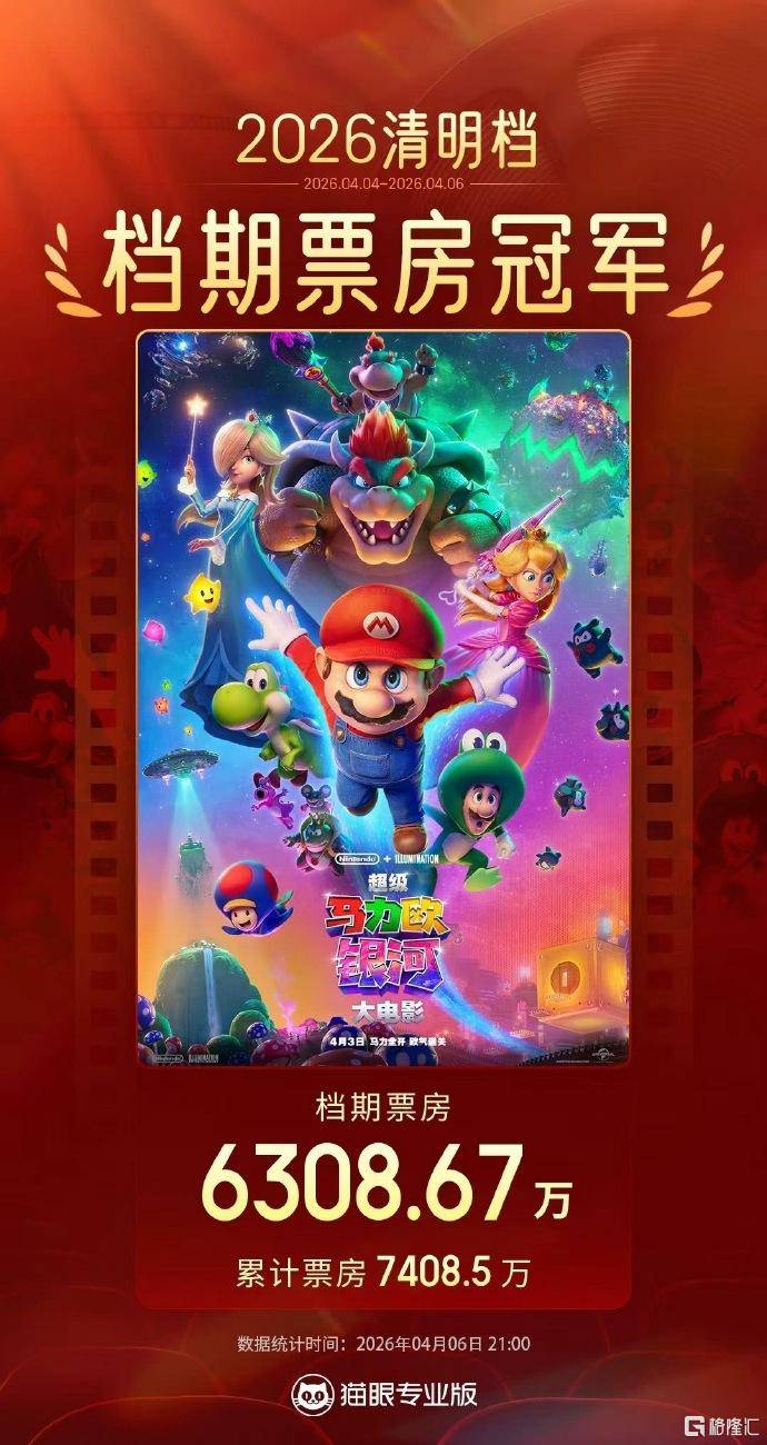 诸多影片中,排在票房榜首的是《超级马力欧银河大电影》。