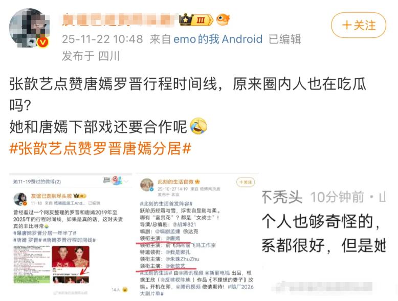 要说内娱最不缺的就是瓜,但是更应该理性吃瓜,长期将目光聚焦在别人的感情问题上,不仅让当事人及其家人感到困扰,就连网友们看多了也会觉得厌烦。