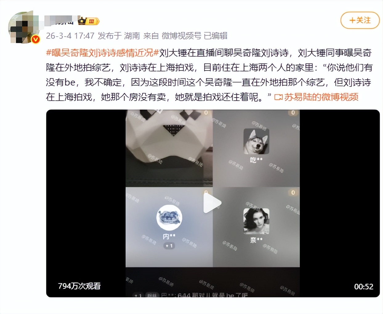 甚至就连著名狗仔刘大锤,都没有办法实锤两人是否离婚,而且刘诗诗依然住在两人的共同房产里。