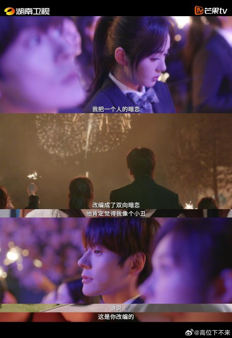 剧集以双线叙事缝合青春与现实的裂缝。校园线中,严州中学的樱花雨、烟火大会的错位牵手,勾勒出青涩懵懂的纯爱底色;职场线里,律所玻璃墙后的眼神交锋、抄袭案中的立场对决,则赋予成年爱情清醒的博弈感。尤其当许淮颂翻阅阮喻以自己为原型写的小说,发现她笔下“爱吃炸鸡的男神”与现实中克制隐忍的自己截然不同时,时空交叠的错位感瞬间戳破暗恋的孤独本质——原来我们都在幻想中重塑对方,又在现实里笨拙靠近。