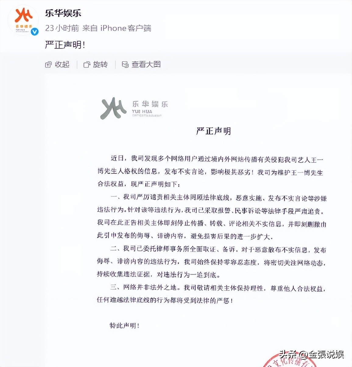 这是乐华对这件事的第一次公开表态,也是明确亮剑的信号。