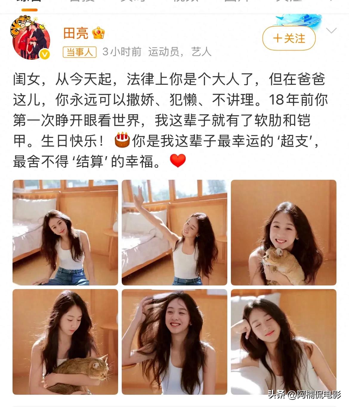 4月14日,田亮与叶一茜在社交平台发文,庆祝女儿森碟18岁生日,还晒出了她的最新写真。曾经在《爸爸去哪儿》第一季里,那个软萌又活泼的“女汉子”,如今彻底蜕变,五官愈发精致,下巴线条变得流畅,身形高挑清秀,完美诠释了女大十八变。回看节目第一季的几位小萌娃,全都悄然长大,模样大变,不少人都快认不出了。