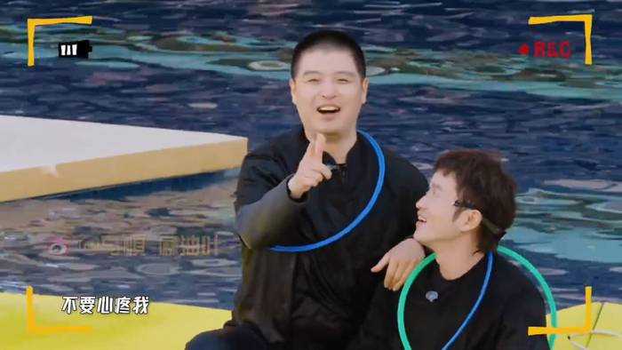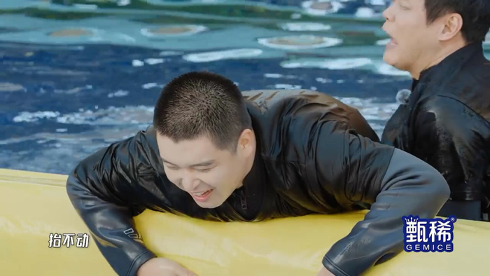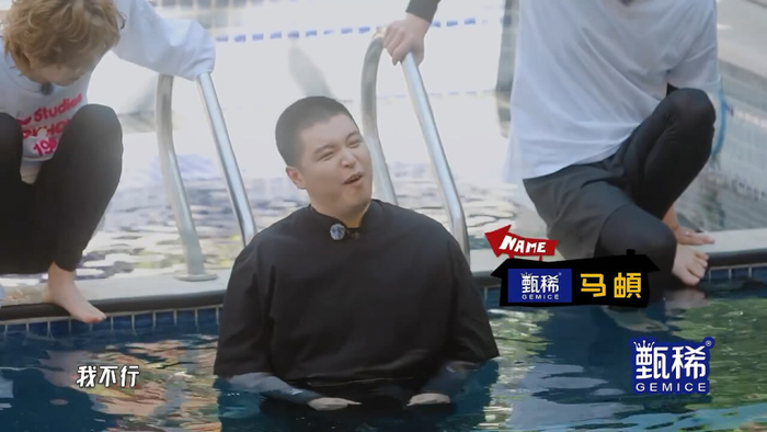 可轮到马頔的时候,画风却彻底变了。刚下水没多久,马頔就开始连连喊停,嘴里不停念叨着“不行不行”,理由是泳池里的水太凉,自己刚结婚,还准备要孩子呢。