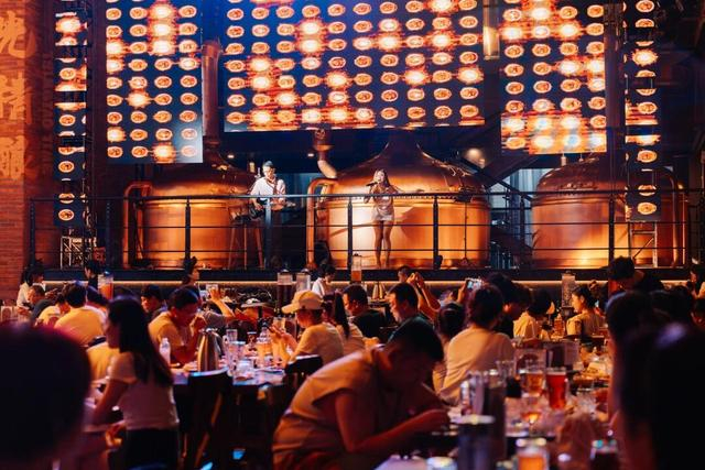 这里汇聚8大系列24款风味精酿,从小麦博克到藤椒赛松、牛奶世涛,酒头直连生产线,每一口都是鲜醇下线的鲜活风味,让经典老歌的醇厚或新生代旋律的清爽都能找到专属酒香搭配。整体工业风装修中,发酵罐化为艺术雕塑,啤酒元素与海岸景观交融,配合专业演艺舞台与音响设备,令海风、酒香与旋律在每一处角落交织碰撞。